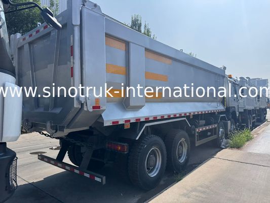 SINOTRUK HOWO 371HP 8X4 ダンプトラック 建設用 旧型フロントフェイス ミリタリーバンパー 鉱山エリア用 二つの警告灯 U字型コンテナ